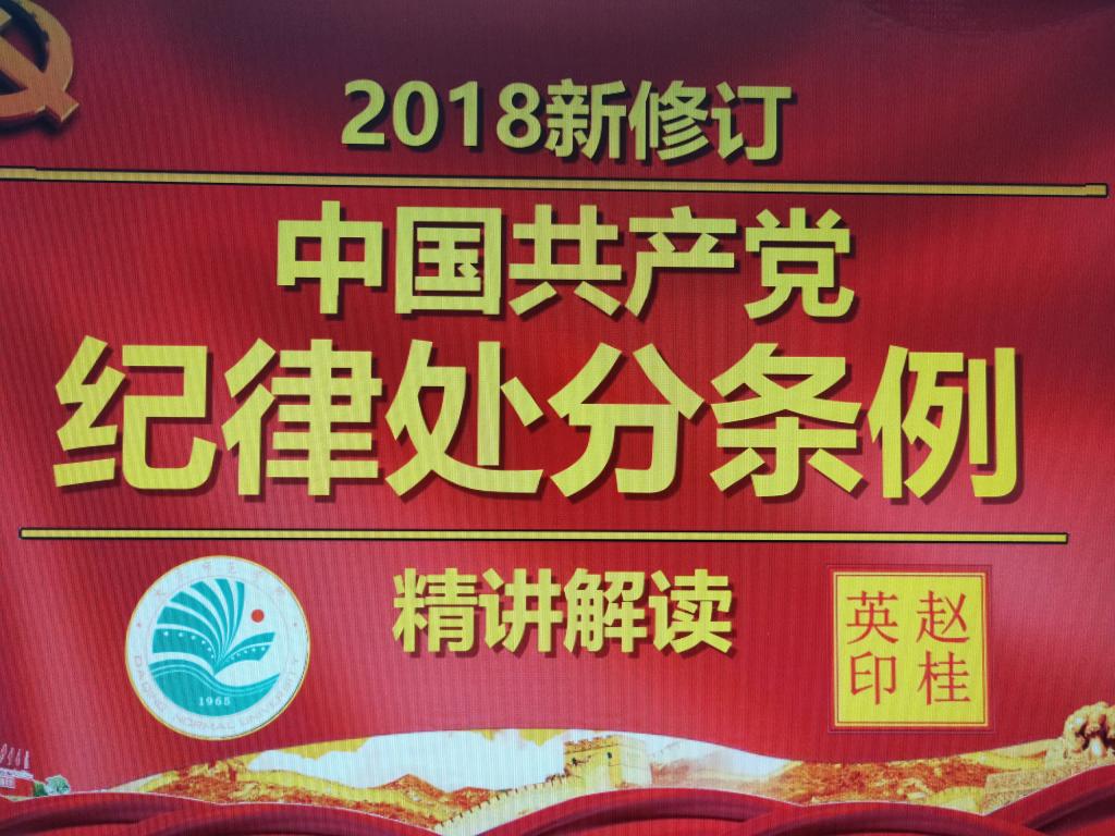 之后,书记重点讲述了《条例》修订后的八大亮点:亮点一——一个思想;亮点二——二个坚决维护,亮点三——三个 重点;亮点四——“四个意识 ”、“四种形态” ;亮点五——五处纪法衔接;亮点六——六个从严;亮点七——七个有之;亮点八——八种典型违纪行为。
