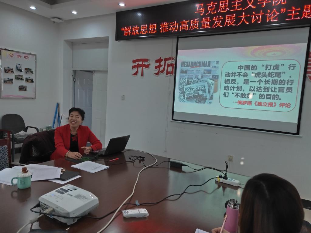 12月5日下午,公司党总支书记赵桂英同志在319会议室给公司全体教职员工带来了一堂生动深刻的廉洁党课,使马院全体重温了《中国共产党纪律处分条例》的相关内容。