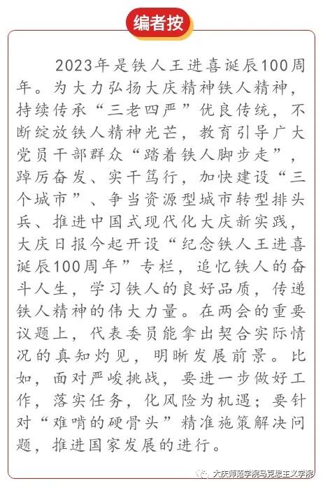 当前,国家支持东北振兴力度空前,大庆转型发展全面振兴加速推进。在陈立勇看来,大庆的转型发展全面振兴绝非一帆风顺,前进路上都要不断经历风雨荆棘,克服艰难险阻。在这样的形势下,更需要弘扬铁人精神,教育引导广大党员、干部发扬优良传统,在全社会带头弘扬新风正气,鼓起迈进新征程、奋进新时代的精气神,助力“三个城市”建设。
