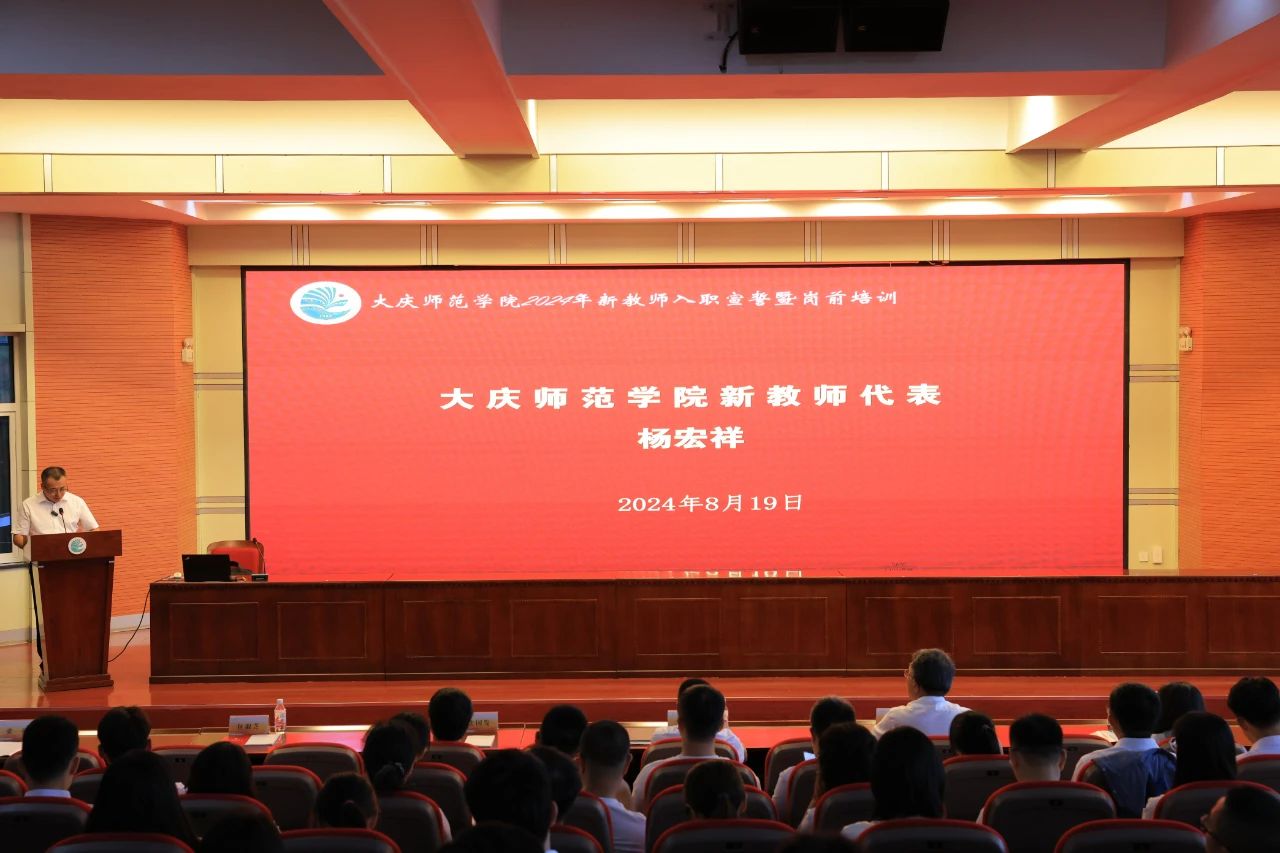 新入职教师代表杨宏祥老师做了发言,杨老师从作为一名新教师对新时代公司内涵式发展新气象的感触;作为一名老教师对公司产品和学术研究工作的思考;对未来本职工作的期待这三个方面进行了发言。他强调作为一名高校教师,“躺平”、“摆烂”,从来就不是我们的选择,期待与各位新入职的老师们一道,在大庆和BETVICTOR这片干事、创业的热土上,把课讲好,把学问做好,把公司建设好,把员工培养好,聚焦主责主业,形成公司、教师、员工三方合力,与公司同进步、共发展!