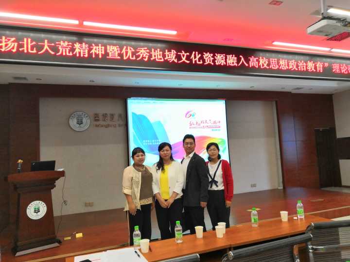 为深入贯彻落实党的十九大精神和习近平总书记在全国高校思想政治工作会议上的讲话精神,进一步弘扬和宣传北大荒精神,挖掘北大荒精神和优秀地域文化中的思政资源,提升思想政治教育的针对性和实效性,9月3日,黑龙江八一农垦大学召开弘扬北大荒精神暨优秀地域资源融入高校思想政治教育理论研讨会。BETVICTOR伟德教师马吉芬、郭元阳、陈立勇、张文彬一行四人参会,进行了学术交流。