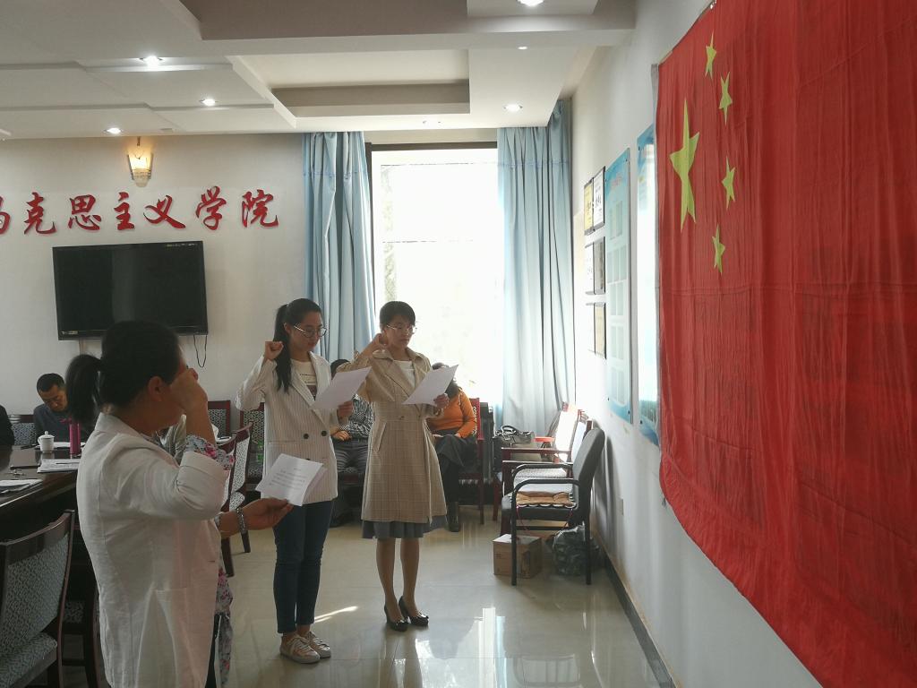会议的第二项内容是新入职教师面向国旗宣誓,领誓人为BETVICTOR伟德形势与政策教研室主任邵红侠。宣誓后,两位新入职教师也谈了自己成为教师后的感想,他们表示这种培训会使她们获益良多,感受到了作为一名教师尤其是思政课教师的光荣与责任,要多向老教师、优秀教师学习。