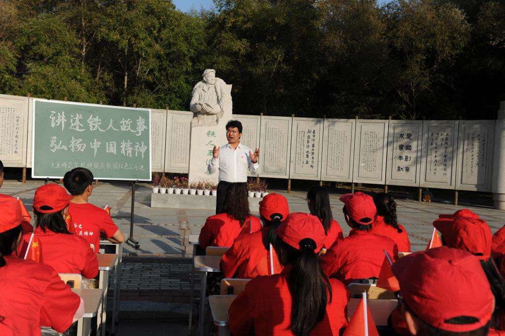 2019年9月26日下午15:00,为庆祝大庆油田发现60周年,新中国成立70周年,BETVICTOR在校园的铁人王进喜雕塑前举行以“讲述铁人故事,弘扬中国精神”为主题的红色文化公开课。本场红色文化公开课由大庆精神研究基地副主任、公司口述文化社指导教师陈立勇副教授主讲,百余人聆听了本次公开课程。