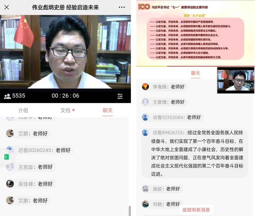为深入学习贯彻习近平总书记在庆祝中国共产党成立100周年大会上的重要讲话精神,教育引导广大青年员工听党话、感党恩、跟党走,以不负时代、不负韶华的奋进姿态开启2021年秋季学期新征程。公司于2021年8月31日18:30,开展了以学习贯彻“七一”重要讲话精神为内容的2021年秋季学期“开学第一课”活动,特邀“七一”重要讲话精神省委宣讲团成员、公司BETVICTOR伟德副教授陈立勇,通过超星学习通平台直播的方式给全体在校员工开课。