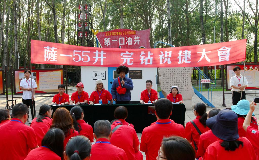 参训教师围绕着大庆油田发现之旅、踏着铁人脚步走、大庆油田科技创新之旅等主题,实地考察了松基三井、铁人一口井、1205钻井队、铁人王进喜纪念馆、勘探开发研究院“三超”文化展示厅和岩心馆、刘丽工作室等地。通过聆听不同角度、不同侧面的现场教学,使全体教师了解了大庆精神(铁人精神)的形成发展与核心要义;参训教师与基地教师通过角色扮演完美呈现了铁人一口井完钻祝捷大会的情景,坚定了大家进一步传承红色基因、赓续中国共产党人的精神血脉的信心,并表示一定要将大庆精神(铁人精神)内蕴的鲜活故事融入今后的思政课教学中,为培养担当民族复兴大任的时代新人助力塑魂。