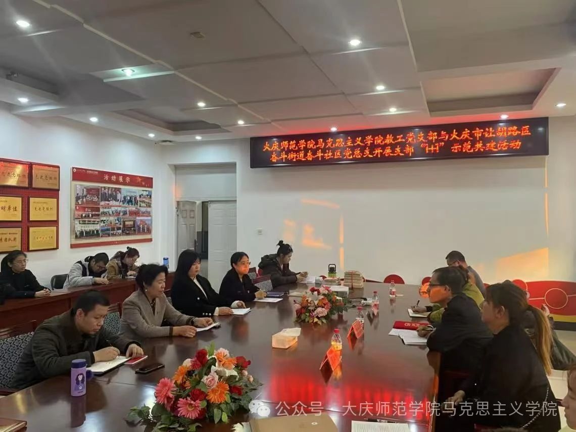 马公司党支书记赵桂英表示,党的二十届三中全会《决定》提出了“完善党员教育管理、作用发挥机制”的基层党建的改革要求。支部结对共建不失为充分发挥党员作用、完善教育管理党员的一种有效机制,校地双向赋能,携手合作,优势互补,支部强强联合,实现“1+1”大于2的目标是我们的初衷和目标。马院教工支部有着多张金字招牌,平时以理论宣讲、思政教育尤其是大庆精神(铁人精神)研究与实践为主开展活动。奋斗社区支部开展的特色活动和多个品牌更是值得我们学习与借鉴的。依托共建平台,教工支部党员可以拓宽服务半径、拓展学习视野,开展调查研究、定点帮扶、志愿服务等活动。