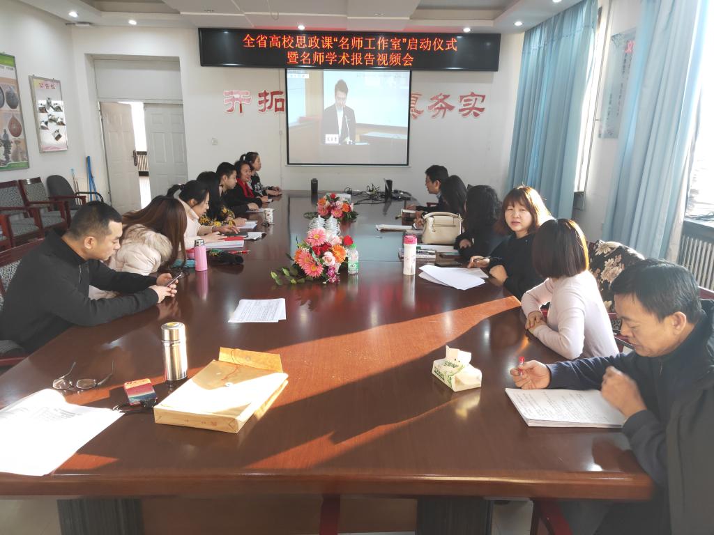 1月4日,上午9点,公司全体无教学任务的教师们齐集五教319会议室,共同收看全省高校思政课“名师工作室”启动仪式暨名师学术报告视频会议。