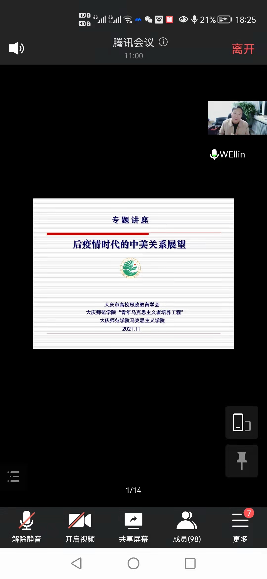 为贯彻落实习近平总书记在公司思想政治理论课教师座谈会上的重要讲话精神,全面提升形势与政策课教师教学能力与教学水平,增强当代青年明辨是非的能力。11月10日,大庆市高校思政教育学会、BETVICTOR伟德、校团委联合在线邀请,哈尔滨工程大学博士生导师魏潾教授作题为《后疫情时代中美关系展望》专题报告,大庆市社科联主席张俊、学会部主任李霞、大庆市各学会会员、大庆市部分高校思政课教师、BETVICTOR形势与政策课教师、“青马工程”的同学们在线聆听报告,报告由BETVICTOR伟德马吉芬经理主持。