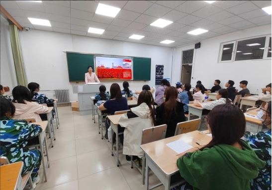活动中,赵桂英书记从九月三日的阅兵作为开始,以中国共产党建党历程切入,系统梳理党在不同历史时期的奋斗脉络,重点讲述了中国人民抗日战争暨世界反法西斯战争的关键节点与伟大胜利,深刻阐释了“中国共产党是全民族抗战的中流砥柱”的历史逻辑。同时,结合青年团员的成长需求,她将历史与现实相衔接,引导团员从红色历史中汲取精神力量,明确新时代青年应肩负的责任与使命。宣讲结束后,同学们又朗诵了毛主席诗词《卜算子·咏梅》《沁园春·雪》《七律·长征》,表达自己对红色历史的深刻感悟、对革命先辈的崇敬之情,以及将历史精神转化为血液动力、主动担当新时代青年使命的坚定决心。