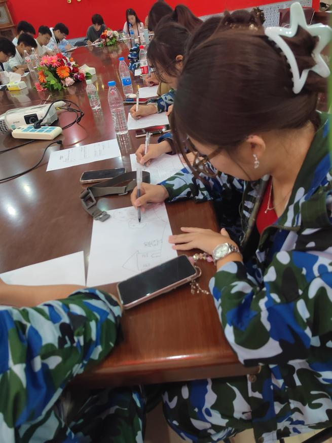 辅导员先简要介绍“房树人绘画”的目的(非艺术创作,而是心理表达),强调“不追求画得像,只注重真实表达”,同时说明绘画规则(在同一画面中绘制房屋、树木、人物,无时间限制),缓解新生紧张感,确保作品能真实反映心理状态。